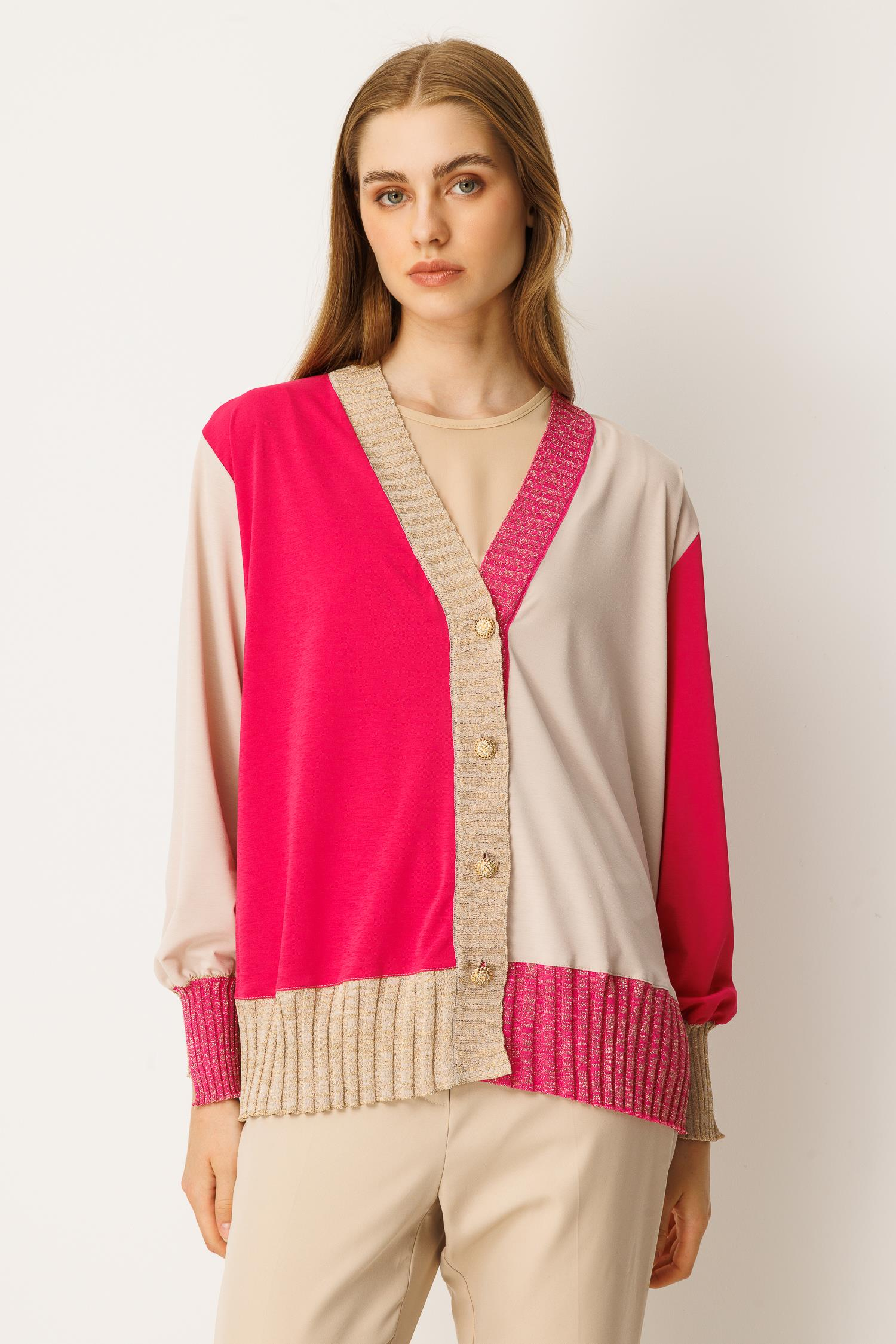 Ghisa Blok Geçişli Hırka FUŞYA (25YÖRHRK3204-FUŞ)