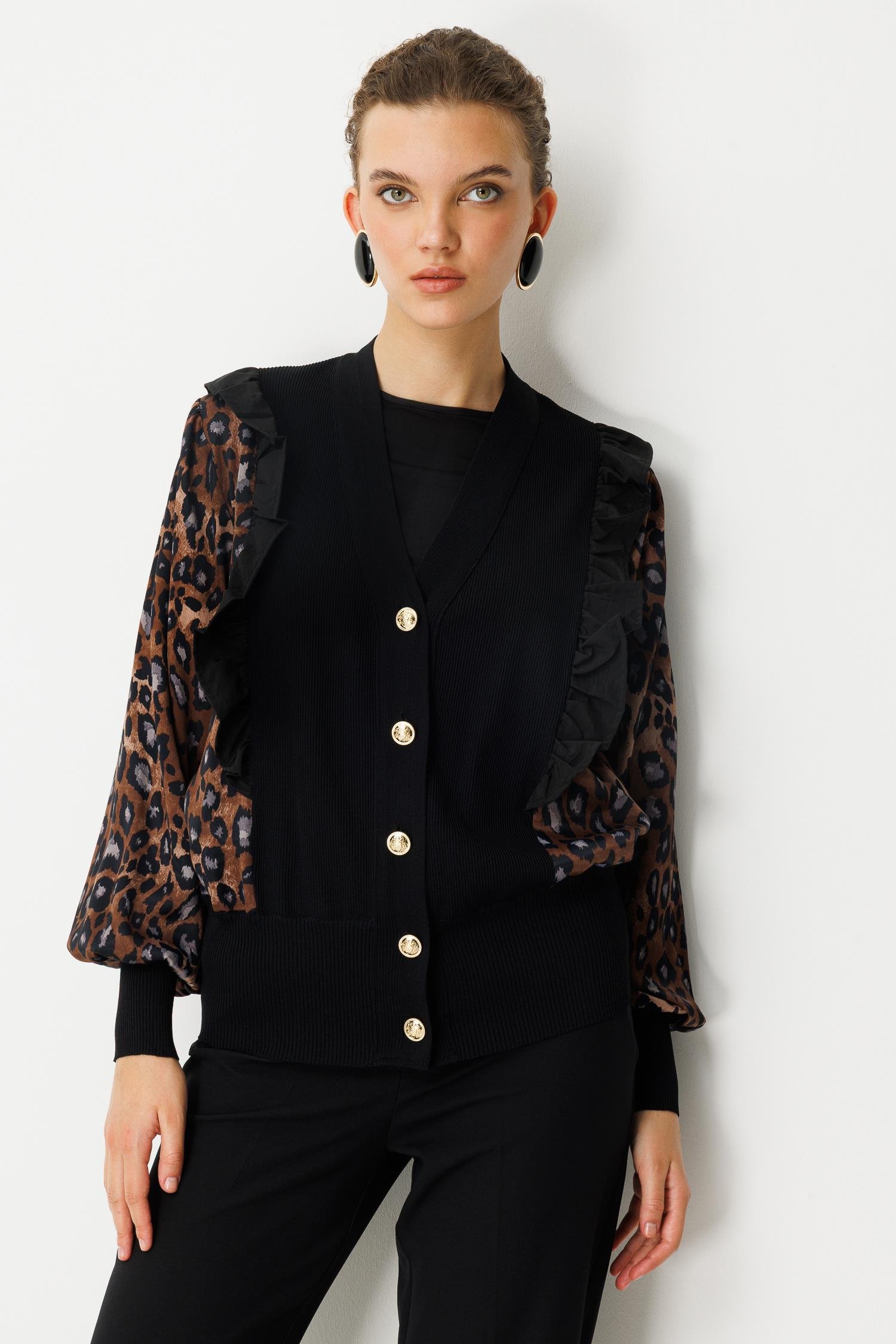 Ghisa Fırfır Detaylı Kısa Hırka KAHVE SİYAH LEOPAR SİYAH