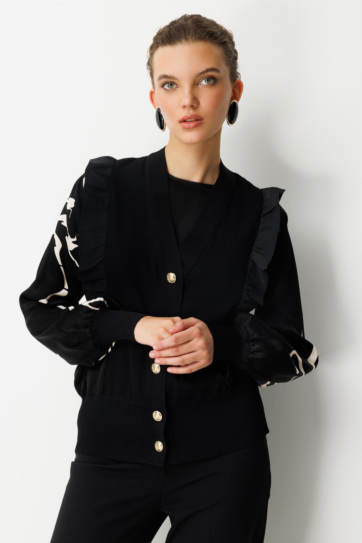 Ghisa Fırfır Detaylı Kısa Hırka SİYAH ÇİZGİ SİYAH (25YÖRHRK3096-SÇZS)