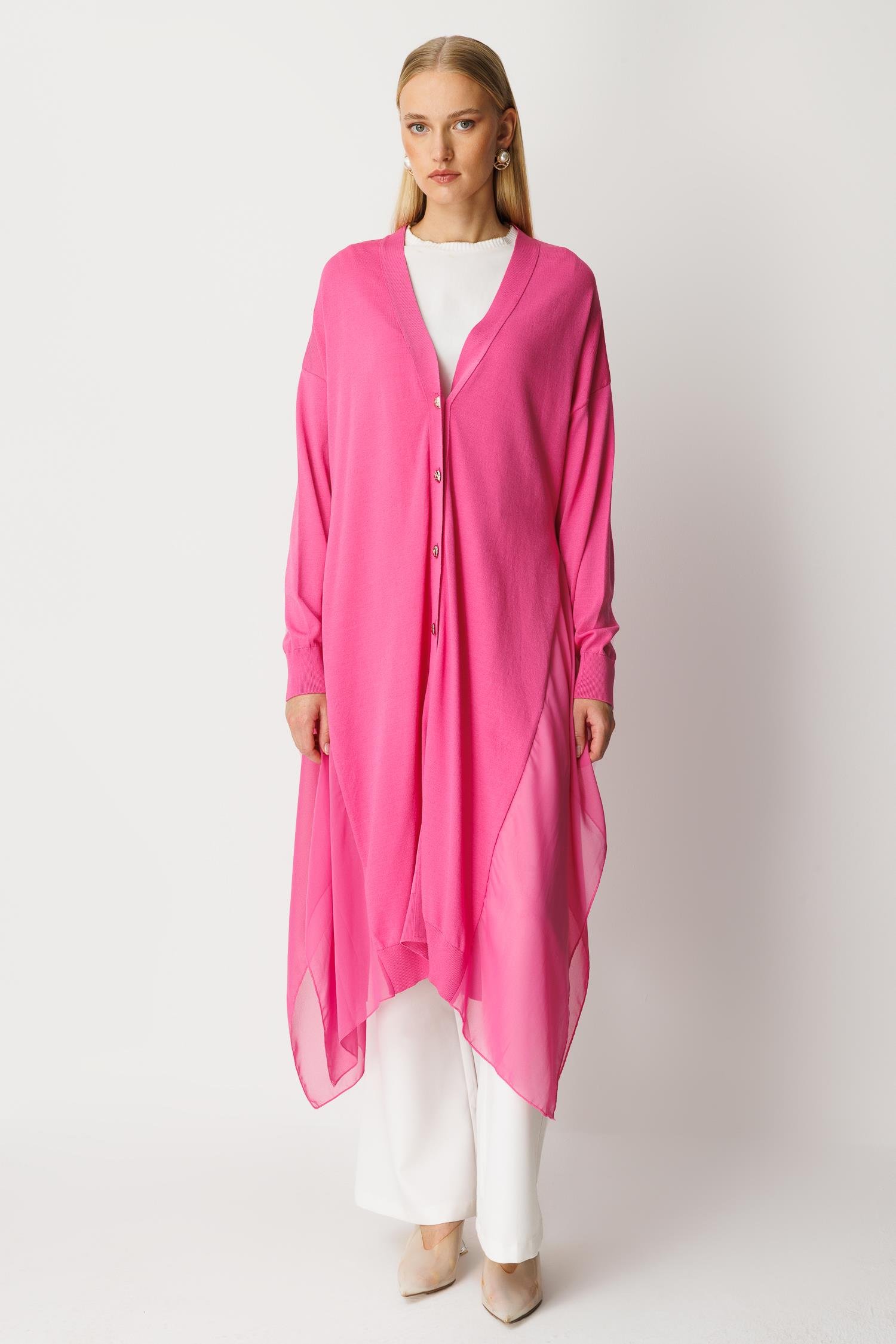 Ghisa Şifonlu Triko Hırka PEMBE (4YOBHRK3669-PMB)
